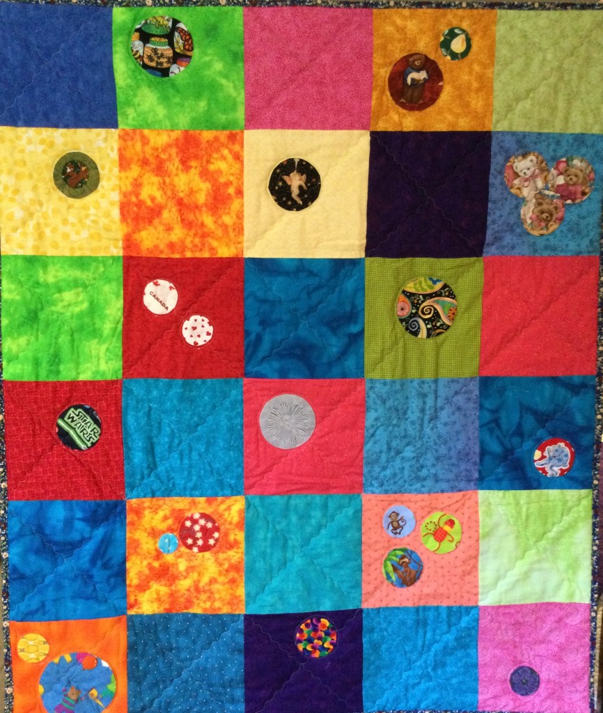 We encourage our members to think about a favourite not-for-profit organization that might benefit from our creations, and submit the details to Wendy. A kids’ quilt or lap quilt is the kind of item that is offered for either silent or live fundraising auctions.