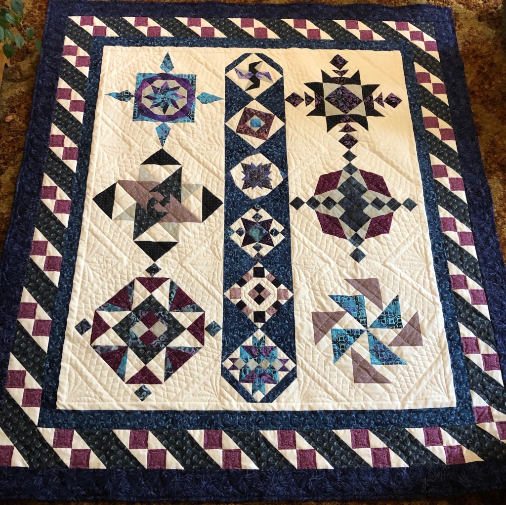 Jacintha B. continues to impress with beautiful and complicated quilts, a couple of which will go to Covenant House for the women who had been abducted into sex slavery and are being housed in two houses in Toronto.